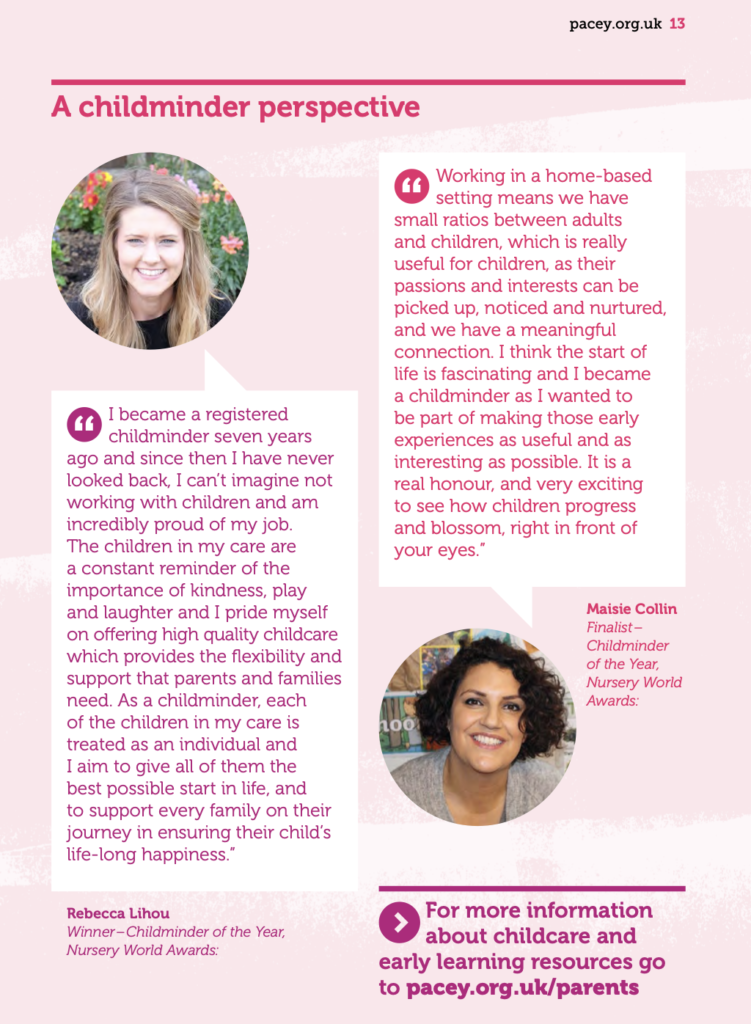 Featured in and writer for PACEY: Childcare Professional Magazine